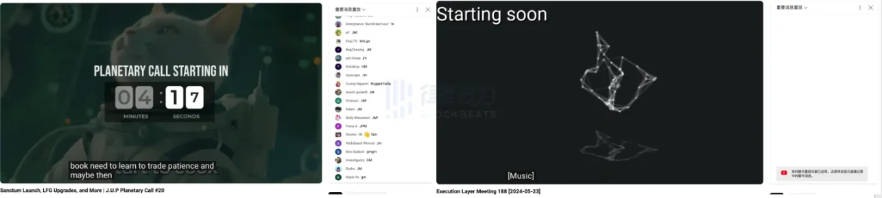 左图为 Jupiter YouTube 直播栏目,右图为第 20 期 Jupiter 行星会议的 Twitter 直播