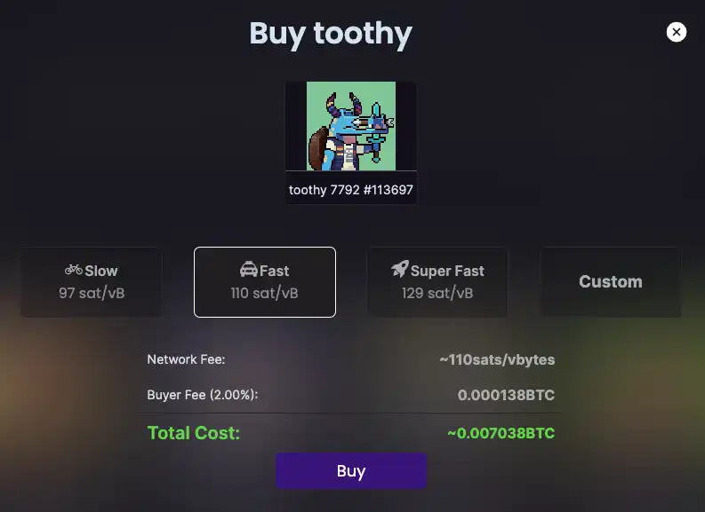 安装并注册 Atom wallet 钱包后,进入Atom market,选择「Collection」页面可看到 TOOTHY 系列,目前有 278 只 TOOTHY 在挂单,选择想要购买的 TOOTHY 点击「BUY NOW」。
